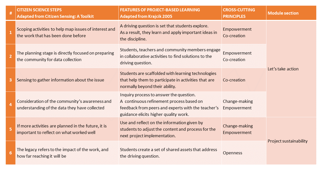 Table 3. Correspondence between citizen science steps and the features of project-based learning